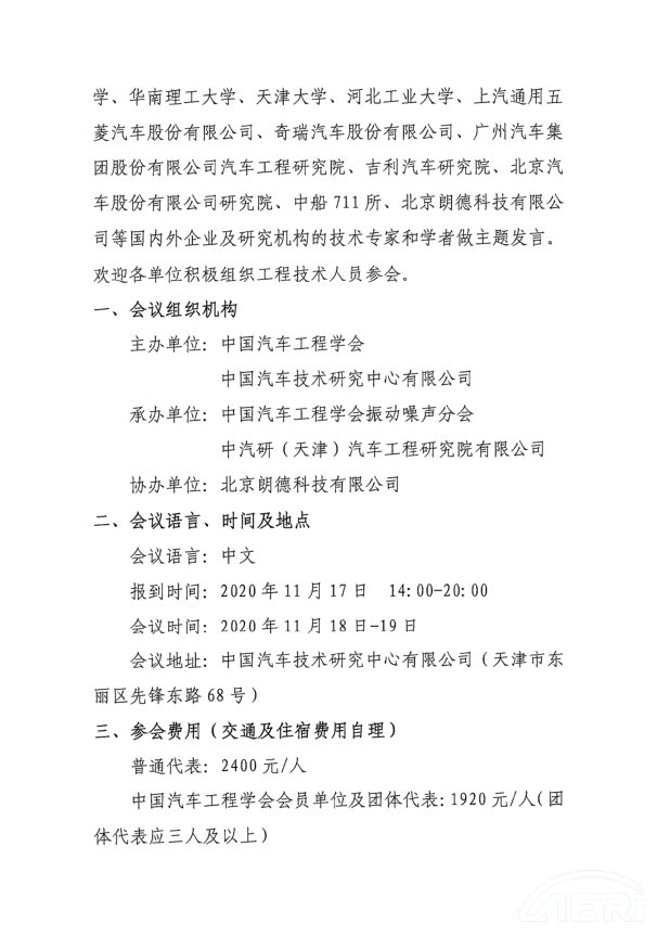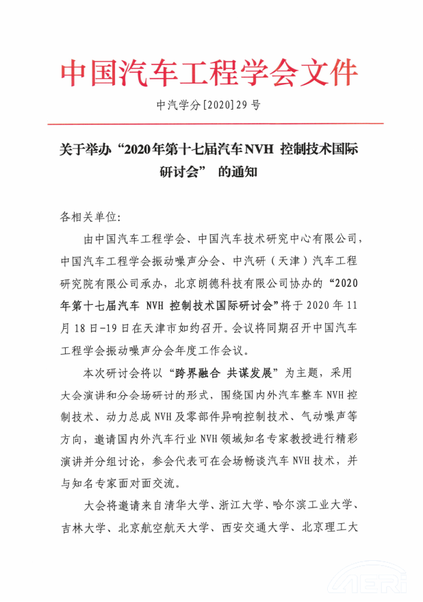關于舉辦“2020年第十七屆汽車NVH 控制技術國際研討會” 的通知