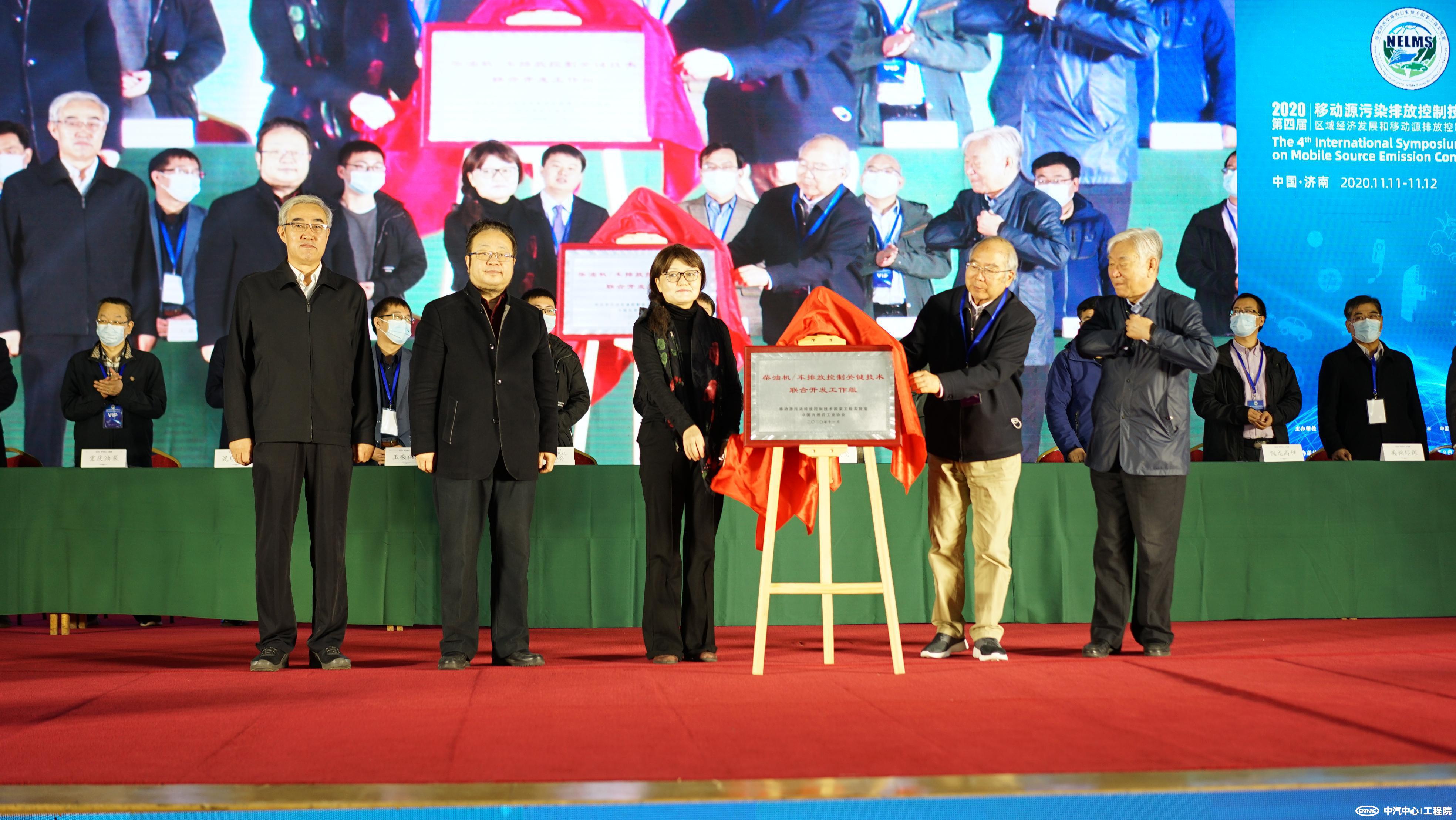 在本屆會議上,移動源污染排放控制技術國家工程實驗室聯合中國內燃機工業協會共同發起,成立了“柴油機/車排放控制關鍵技術聯合開發工作組”。來自濰柴、玉柴、昆明貴研、中自環保、宜興非金屬、山東奧福等14家行業企業的代表共同見證了工作組的成立。劉鴻志副秘書長、郝吉明院士、賀克斌院士、蘇萬華院士和鮑曉峰理事長共同為工作組成立揭牌。