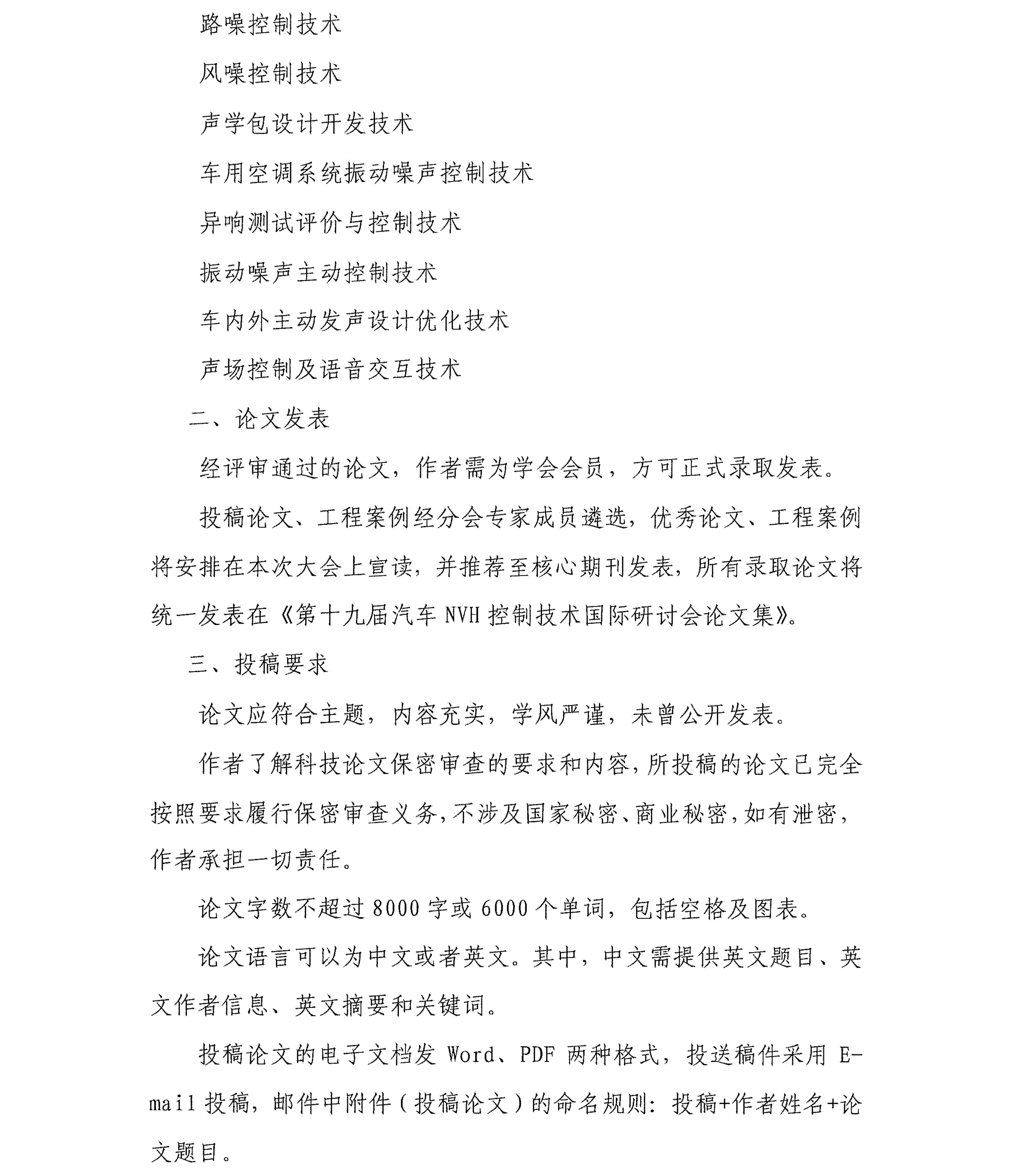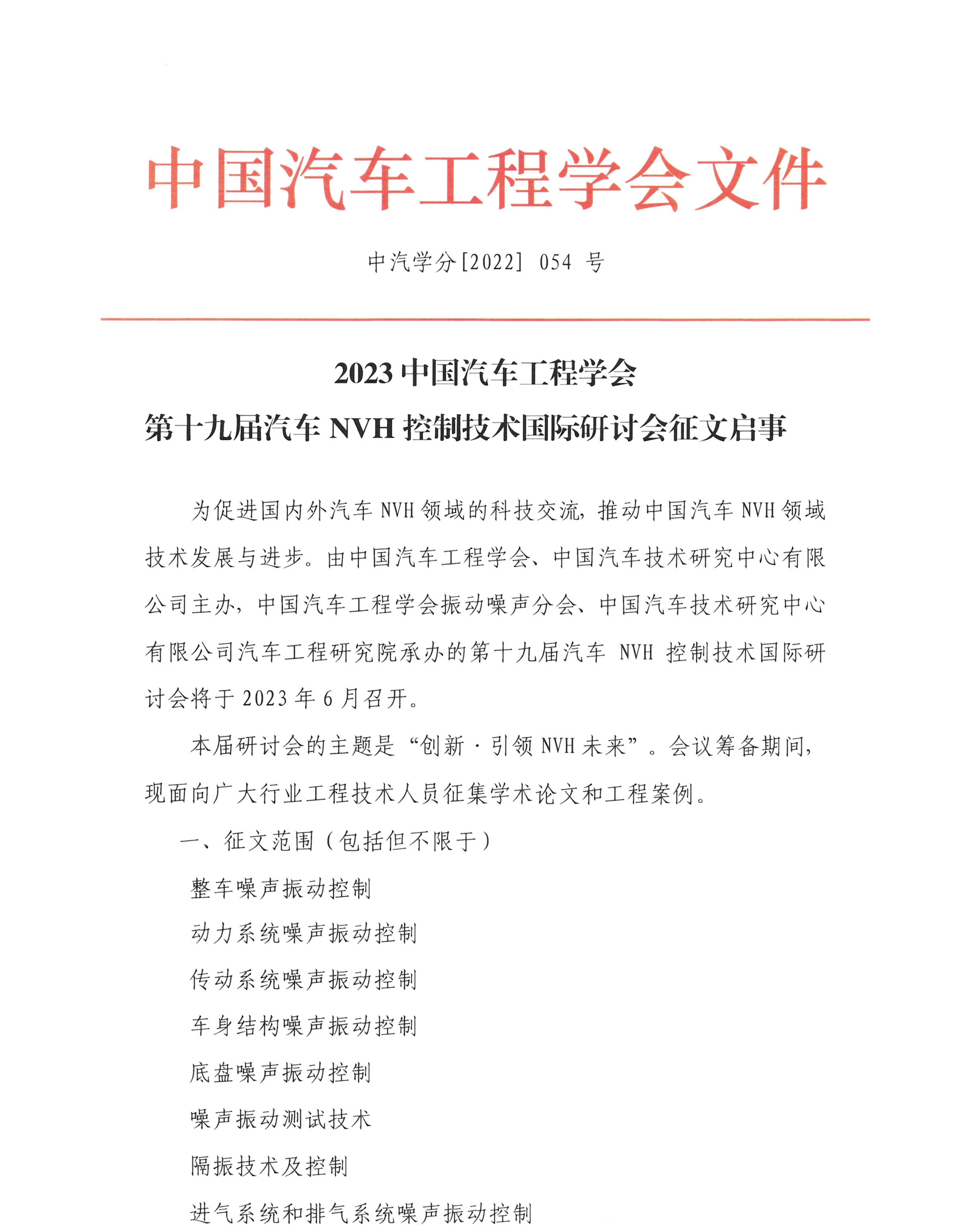 第十九屆汽車NVH控制技術(shù)國際研討會會議征文啟事