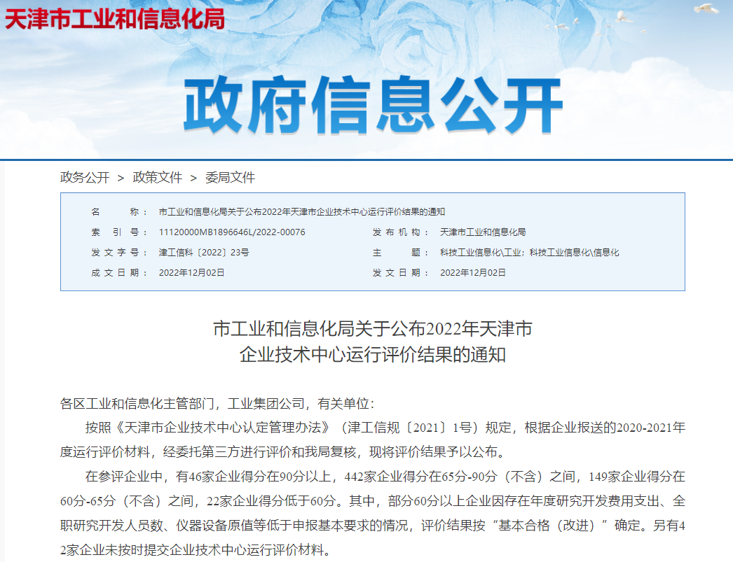 此外,本月天津市工業和信息化局發布《關于公布2022年天津市企業技術中心運行評價結果的通知》,中汽中心工程院以較高位次順利通過天津市企業技術中心運行評價。