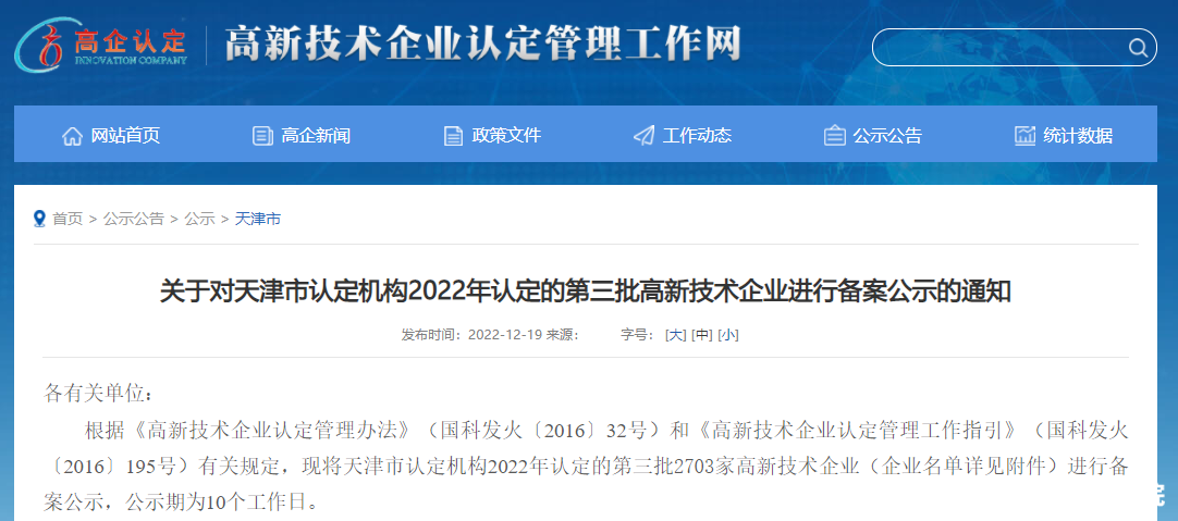 近日,全國高新技術企業認定管理工作領導小組辦公室發布《關于對天津市認定機構2022年認定的第三批高新技術企業進行備案公示的通知》,中汽中心工程院順利通過2022年度國家高新技術企業重新認定,繼2013年、2016年、2019年之后第四次被認定為國家高新技術企業。