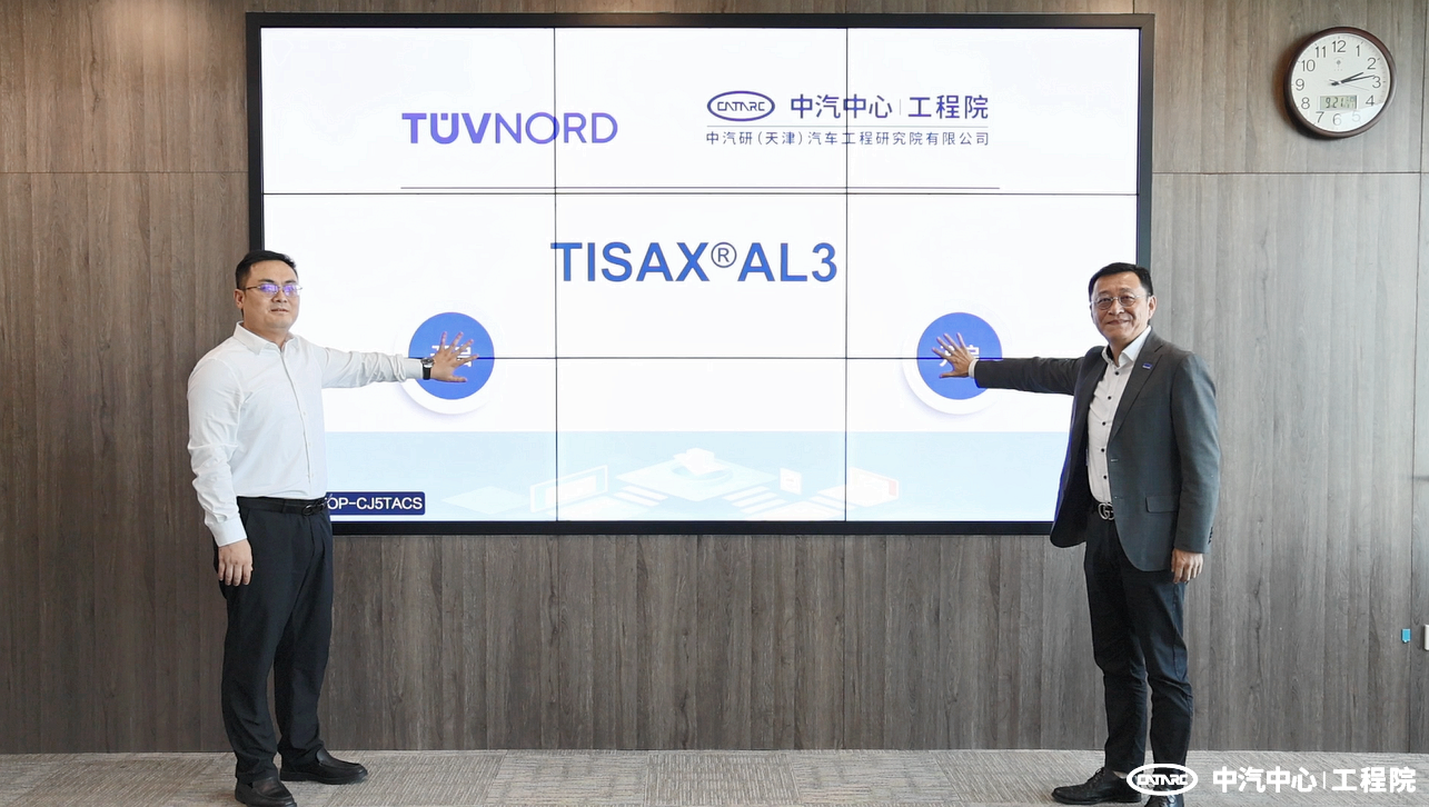 2023年9月21日下午,TISAX®AL3最高等級可信信息安全評估交換標簽發布儀式在中汽研(天津)汽車工程研究院有限公司(以下簡稱“中汽中心工程院”)順利舉行。中汽中心工程院順利通過TÜV NORD中國區審核專家組審核,獲得ENX備案認可的TISAX®AL3最高等級可信信息安全評估交換標簽。中汽中心工程院黨委委員、副總經理張志國,TÜV NORD大中華區副總裁宋海寧出席儀式并見證標簽發布。
