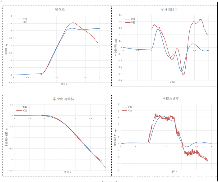 圖2  某車側風穩(wěn)定性動力學仿真與試驗對比分析