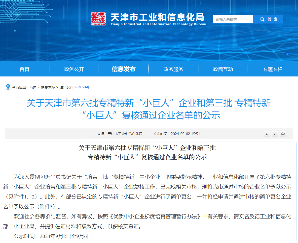 近日,根據工業和信息化部審核認定結果,天津市工業和信息化局發布了第六批專精特新“小巨人”企業公示名單,中汽研(天津)汽車工程研究院有限公司(簡稱“中汽中心工程院”)位列其中,榮獲國家級專精特新“小巨人”企業榮譽稱號。