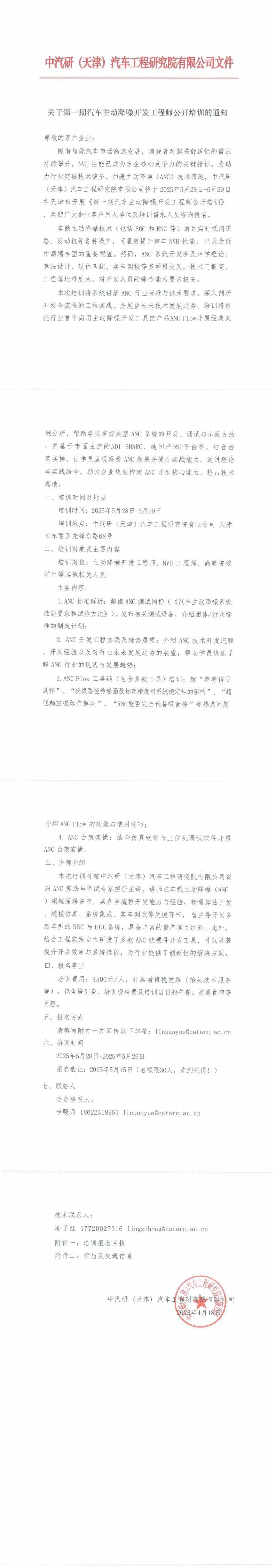 關于第一期汽車主動降噪開發工程師公開培訓的通知
