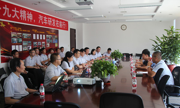 2018年8月17日,力帆集團總裁馬可、總裁助理兼研究院院長任亞軍、總裁助理兼質量中心總經理李金龍、認證中心總經理張軍一行訪問中汽中心汽車工程研究院(以下簡稱“工程院”),工程院院長高繼東、副院長龔進峰、副院長馬杰及各開發部負責人接待了客人一行。