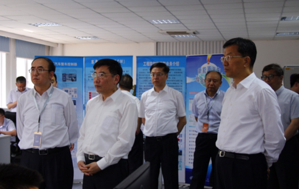 儀式后,苗部長(zhǎng)和懷書記一行參觀了工程院27通道整車道路模擬試驗(yàn)臺(tái)、輪胎性能試驗(yàn)室、整車電子電器硬件在環(huán)仿真測(cè)試驗(yàn)室。參觀后,中汽中心工程院院長(zhǎng)高繼東向領(lǐng)導(dǎo)匯報(bào)了工程院及中汽中心(天津)汽車科創(chuàng)園的發(fā)展情況。苗部長(zhǎng)對(duì)工程院的發(fā)展給予好評(píng)。