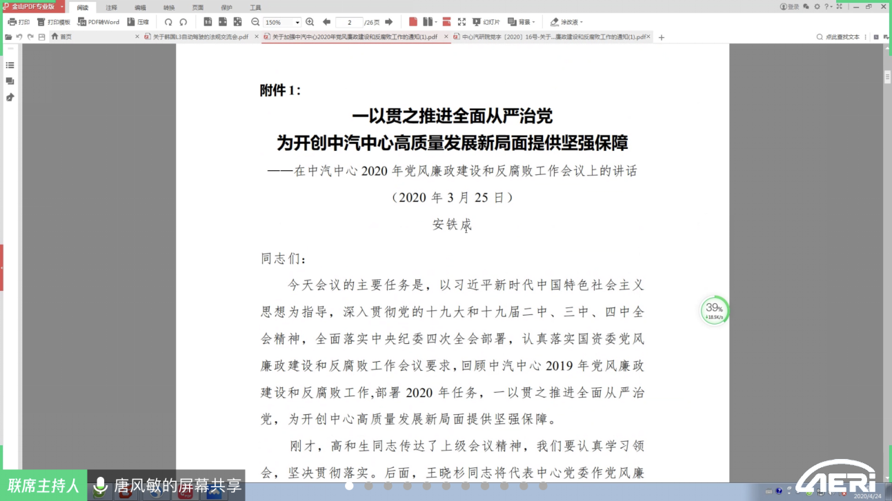 為了加強支部黨風廉政建設,打造風清氣正的黨員隊伍,2020年4月24日,工程院黨委第五支部開展黨風廉政教育活動?;顒佑芍Р繒浱骑L敏主持,41名黨員參加。