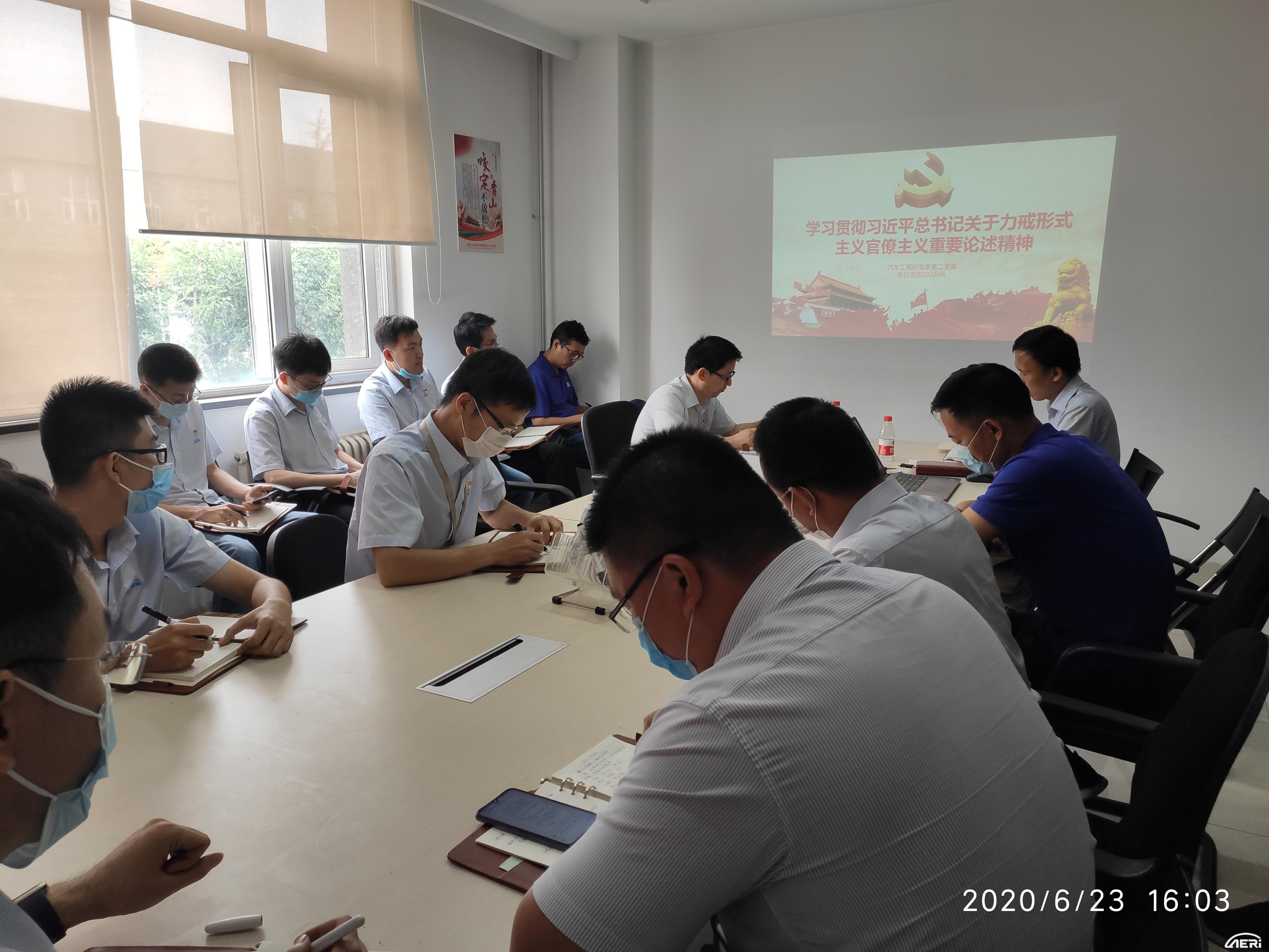 為堅決克服形式主義官僚主義思想,堅決糾治形式主義官僚主義問題,進一步加強支部作風建設(shè),2020年6月23日下午,工程院黨委第二支部組織全體黨員開展以“學習貫徹習近平總書記關(guān)于力戒形式主義官僚主義重要論述精神”為主題的黨日活動。