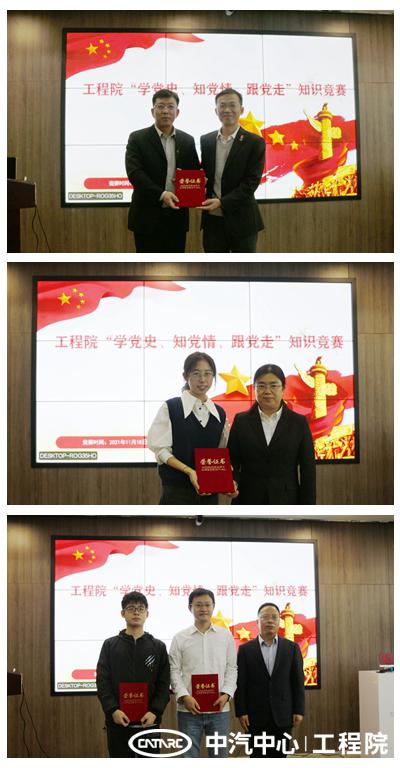為熱烈慶祝建黨100周年,檢驗黨史學習教育活動開展以來的學習成效、工作成效,營造樂知好學氛圍,激發全體員工干事創業的熱情,推動工程院又好又快發展。11月18日下午,工程院黨委組織開展了主題為“學黨史、知黨情、跟黨走”的知識競賽。工程院黨委書記、總經理王建海,黨委副書記、紀委書記馬杰,黨委委員、副總經理、總工程師李洪亮到場觀賽并為獲獎的團體和個人頒發獎項。