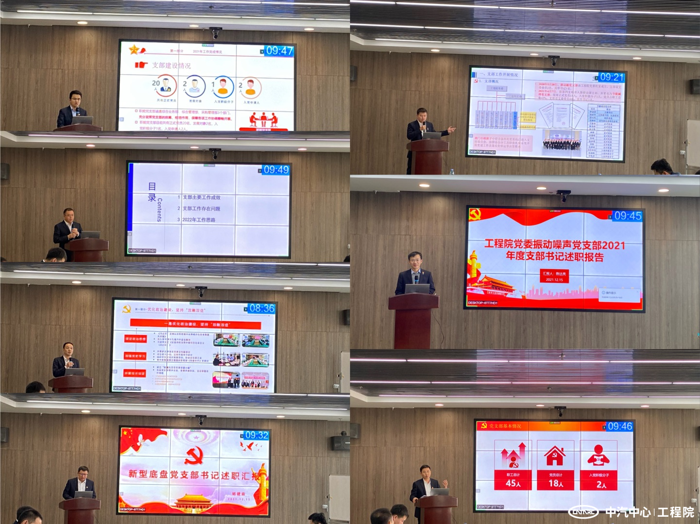 在每位書記述職后,王建海針對各支部黨建、業務雙融雙促情況進行了現場一對一點評,并就持續加強和改進支部建設提出具體要求。他指出:第一,要提高政治站位,深入貫徹落實習近平總書記指示批示精神和上級有關要求,認真研究切實可行的貫徹落實措施并推進落實。第二,要強化黨建、業務同頻共振、雙融雙促目標要求,拓寬工作思路和方式方法,進一步發揮黨組織和黨員作用。第三,要增強創新理念,探索創新機制,用新思想、新知識武裝頭腦、服務具體工作,在黨建內容上創新、黨建工作方式上創新,推動黨建工作向更高層次水平邁進。第四,要加大談心談話力度,積極、主動了解一線員工思想訴求,全員上下統一思想、凝心聚力、推動發展。第五,要進一步加大宣傳工作力度,豐富宣傳形式,打造工程院黨建和經營的品牌效應。第六,要加強企業文化建設,在踐行好中汽中心企業文化的基礎上,盡快推動工程院企業文化宣傳落地,營造積極向上、干事創業的濃厚氛圍。第七,扎實推進各項整改工作落實,全面提升公司經營管理水平和工作質量。