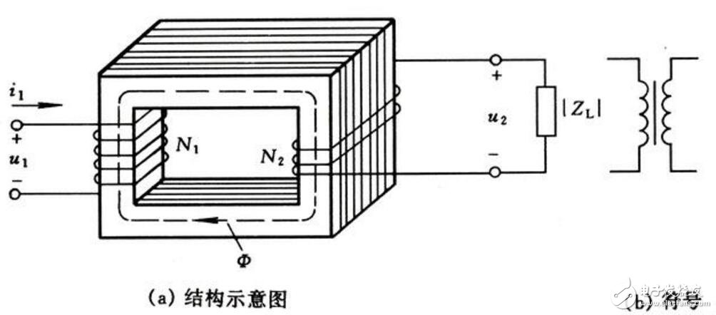 變壓器由鐵芯和繞組兩個根基部門組成,以下圖所示,是它的表示圖和標記。